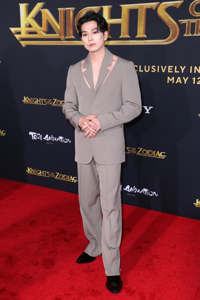 乍看基本款的米灰色西装,最大看点便在剑领两旁的镂空设计!也因为西装本身的设计特点,新田真剑佑没有再搭配其他珠宝,简单的黑色尖头皮鞋,文质彬彬又带着一点引人遐想的空间。