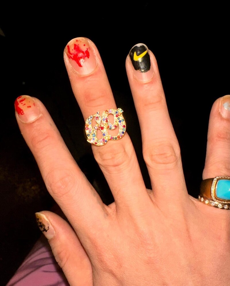 随意的点上指彩,以黑底衬托黄色NIKE的LOGO,是独属GD的随性!