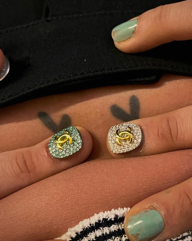 自家品牌的经典标誌怎么能没有?看到这里不免觉得GD好像蛮锺爱薄荷绿,这个颜色的指彩很常出现在他指尖呢!