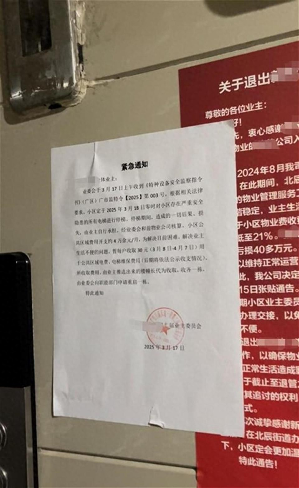 在物业撤场几天后,该小区一片混乱,电梯被停运,高层业主上下班要爬30多层楼,这要是年轻人还能说锻炼锻炼身体,老年人根本受不了!